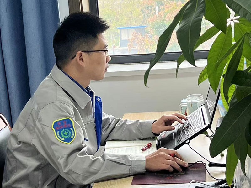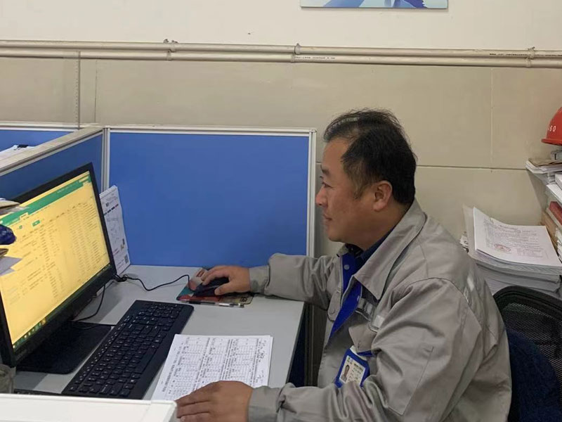 機關黨支部黨員、財務部副經理許偉正在認真核對各項生產經營報表,為順利對接集團SAP系統上線梳理基礎數據。時值月末,各種數據處理工作量陡增,其始終堅持以黨員標準要求自己,工作中任勞任怨,確保工作高效績。